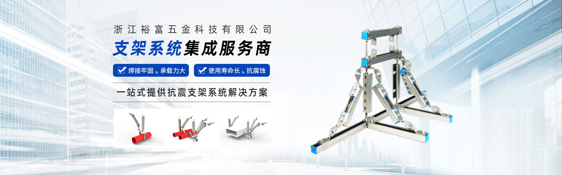 浙江裕富五金科技有限公司位于美麗的杭州臨安青山湖畔,注冊資金5000萬人民幣。是一家集研發(fā)、設(shè)計、制造、銷售、安裝、技術(shù)服務(wù)于一體的,專業(yè)從事抗震支吊架、管廊支吊架、綜合承重支吊架等,多功能、多元化的現(xiàn)代新興科技企業(yè)。 公司技術(shù)力量雄厚、設(shè)備齊全、工藝先進(jìn)、管理體系高效完善,在注重產(chǎn)品設(shè)計、選材、結(jié)構(gòu)工藝等細(xì)節(jié)基礎(chǔ)上,嚴(yán)格按照GB/T37267-2018、GB/T9978.1-2008等國家標(biāo)準(zhǔn)進(jìn)行生產(chǎn)和管理,立足本土并扎根施工現(xiàn)場,多次調(diào)研測試并持續(xù)改進(jìn),產(chǎn)品通過了國家建筑工程質(zhì)量監(jiān)督檢驗中心的檢測,打造了“裕富欣”品牌。
